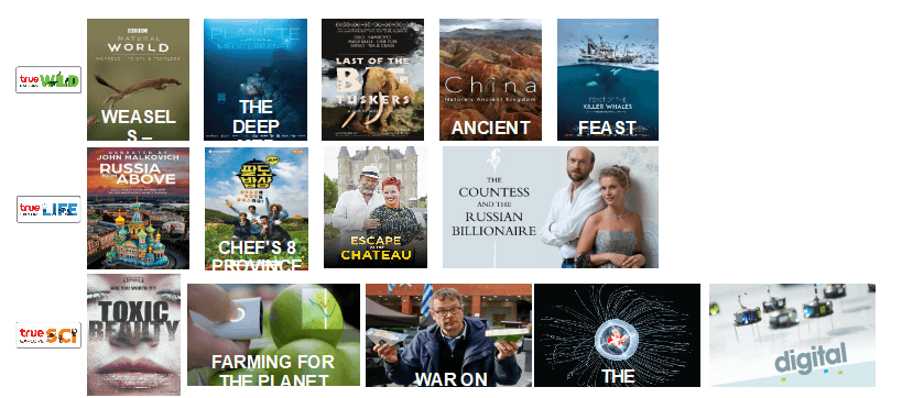 การรับชมผ่านกล่องทรูไอดีทีวี สามารถเลือกช่องที่อยู่ในแพ็กเกจหรือคอนเทนต์ได้เลย