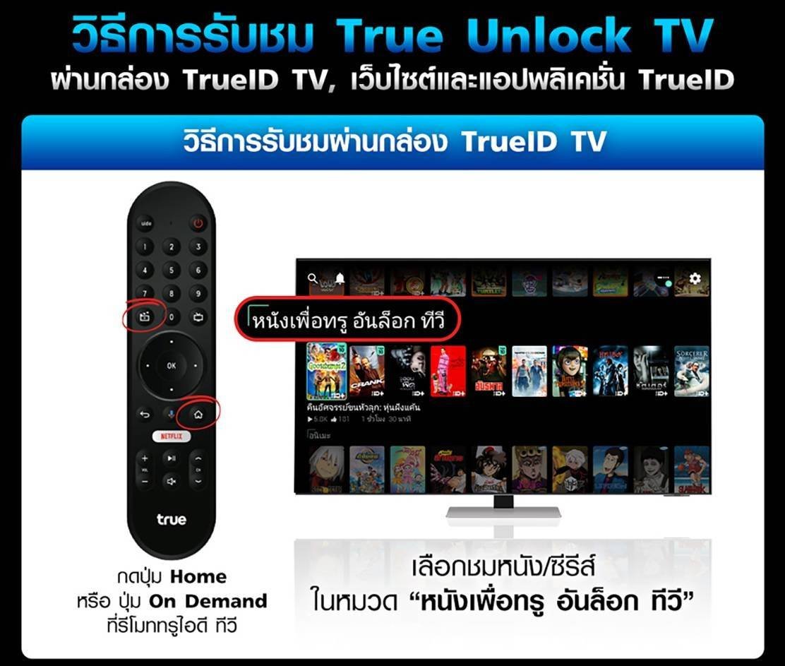 True Unlock TV สามารถเข้ารับชมผ่านกล่องทรูไอดีทีวี หรือ มือถือ