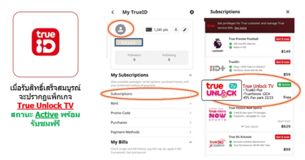 วิธีการรับสิทธิ์ และ วิธีการรับชม True Unlock TV