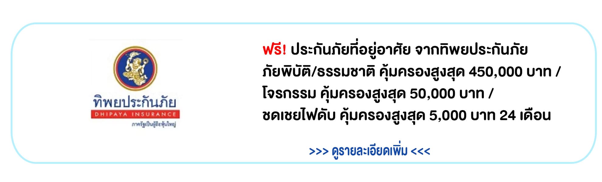 - แถม ทิพยประกันภัย ประกันภัยที่อยู่อาศัย 24 เดือน