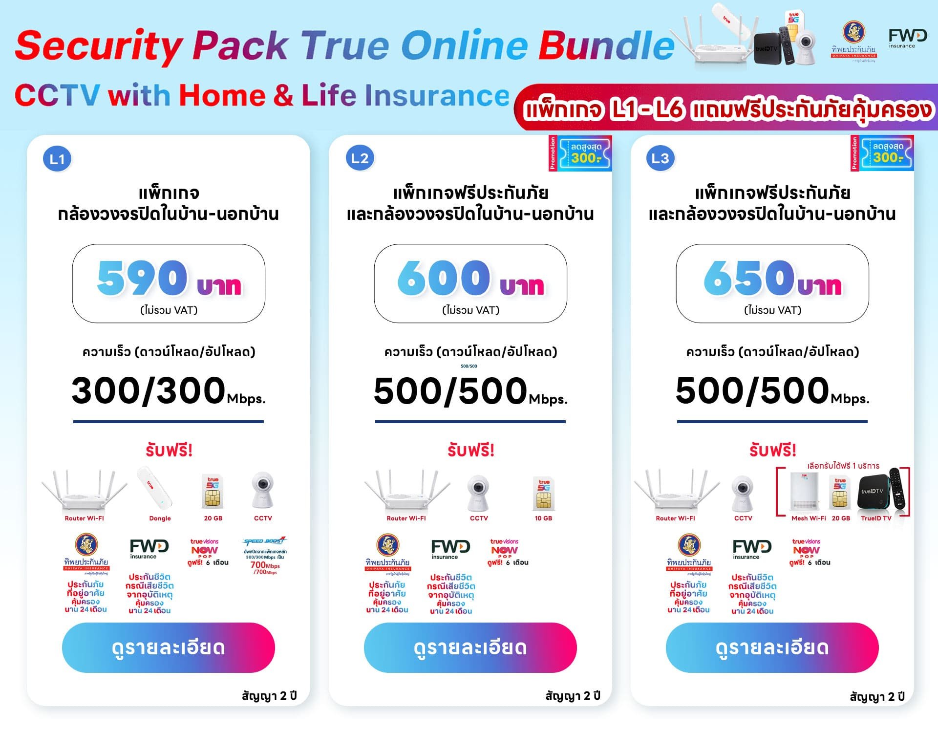 แพ็กเกจ L4 ราคา 650 บาท ( รวมภาษี 695.50 บาท)