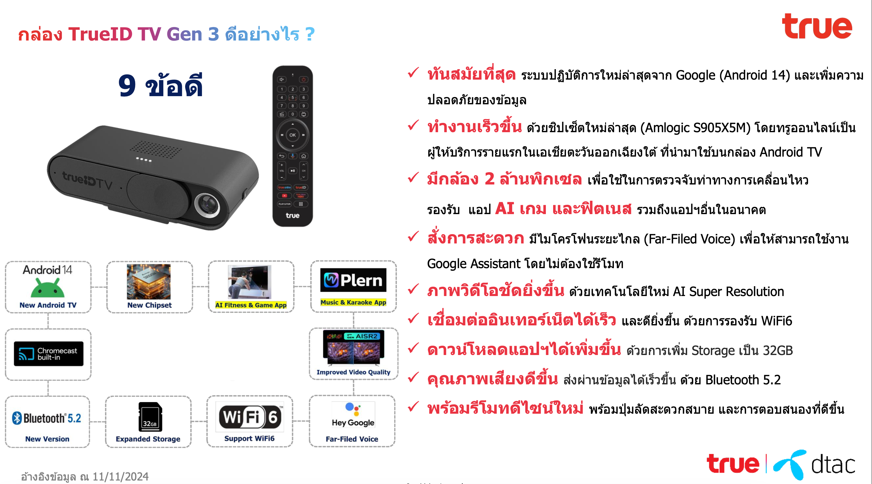 - ได้รับ กล่องทีวี TrueID TV Gen3 รับชมรายการได้ 60 ช่อง
