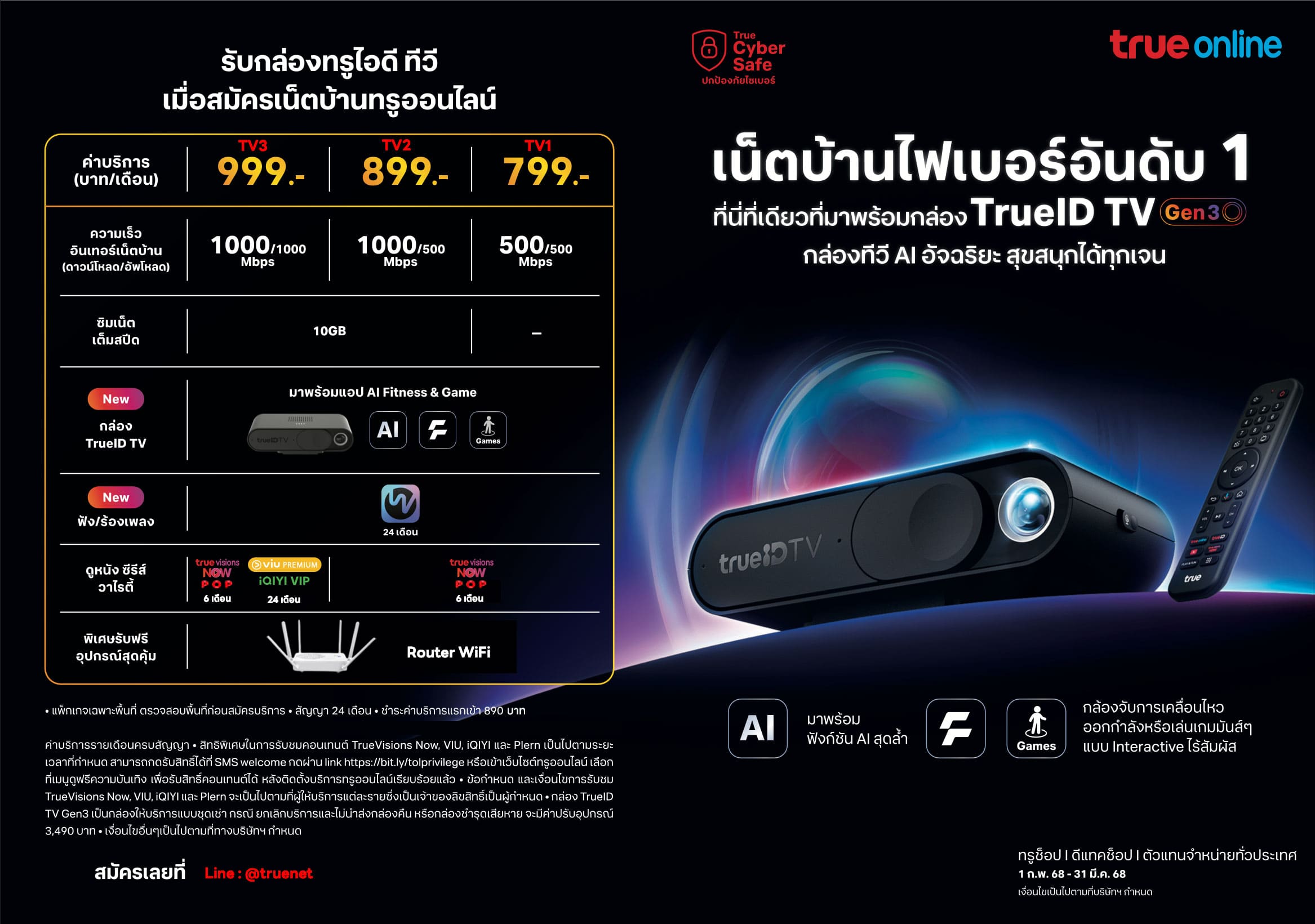 *แพ็กเเกจ เน็ตบ้านพร้อมกล่อง TrueID TV Gen3 *แพ็กเเกจ เน็ตบ้านพร้อมกล่อง TrueID TV Gen3