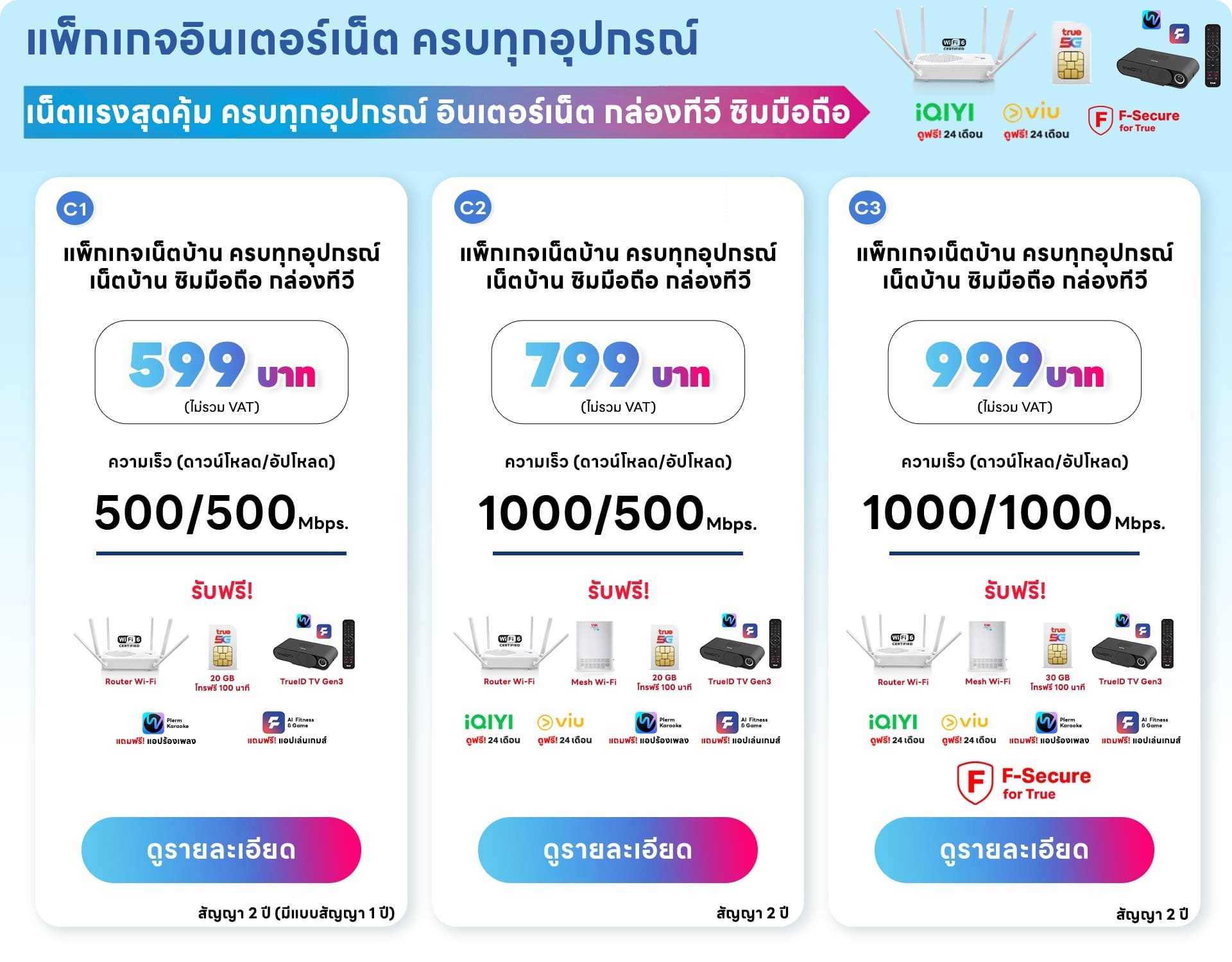 แพ็กเกจ C3 ราคา 999 บาท ( รวมภาษี 1068.93 บาท)
