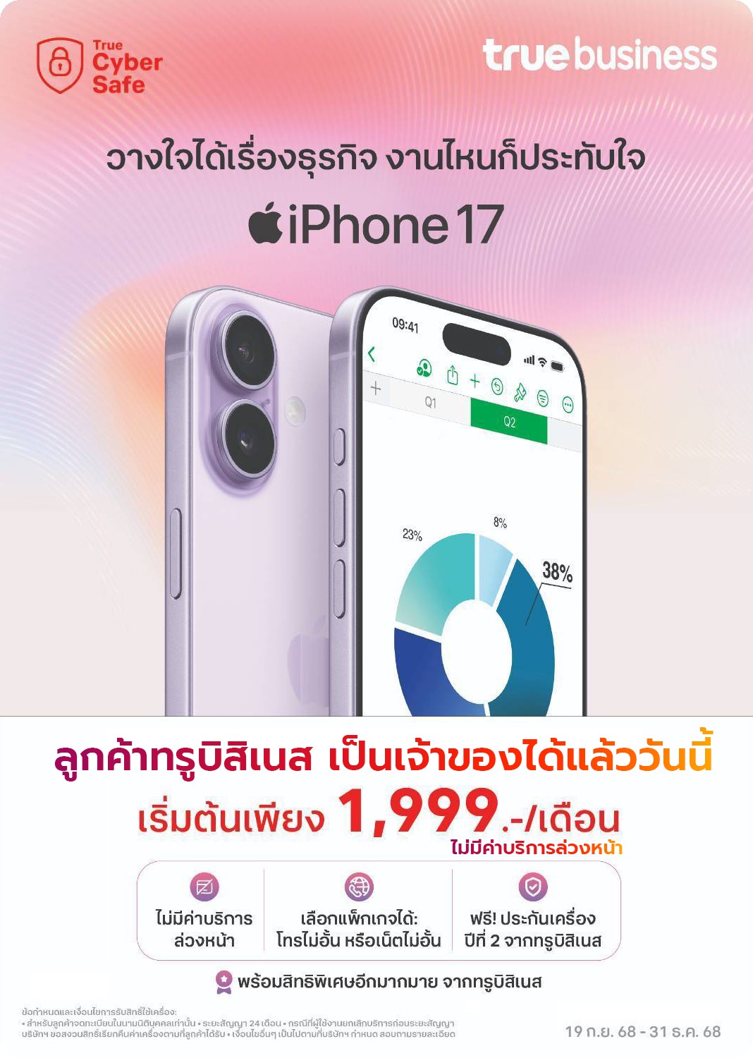 ลูกค้านิติบุคคล เป็นเจ้าของได้แล้ววันนี้ พร้อมรับสิทธิ์ใช้เครื่อง iPhone 17 Pro หรือ iPhone 17 Pro Max พร้อมแพ็กเกจ