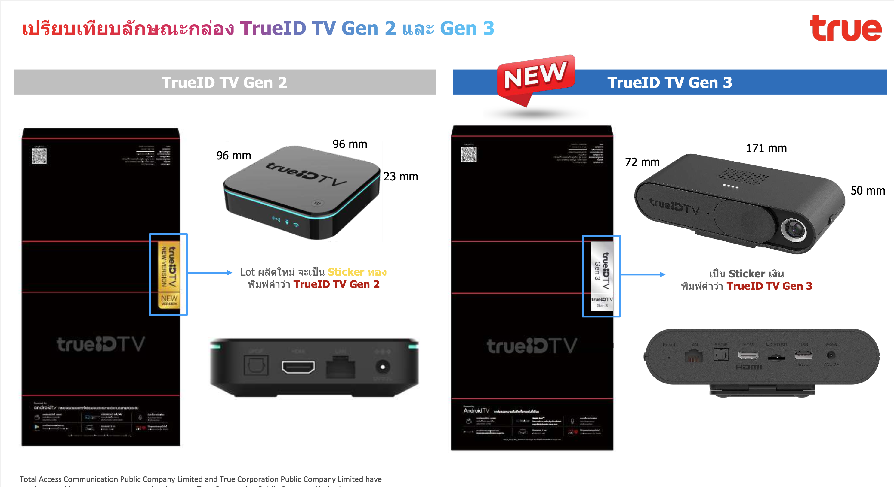 กล่อง TrueID TV Gen 3 ไม่ได้มีขายทั่วไป แต่จะได้รับฟรีสำหรับลูกค้าใหม่ที่สมัครแพ็กเกจเน็ตบ้านทรูออนไลน์.