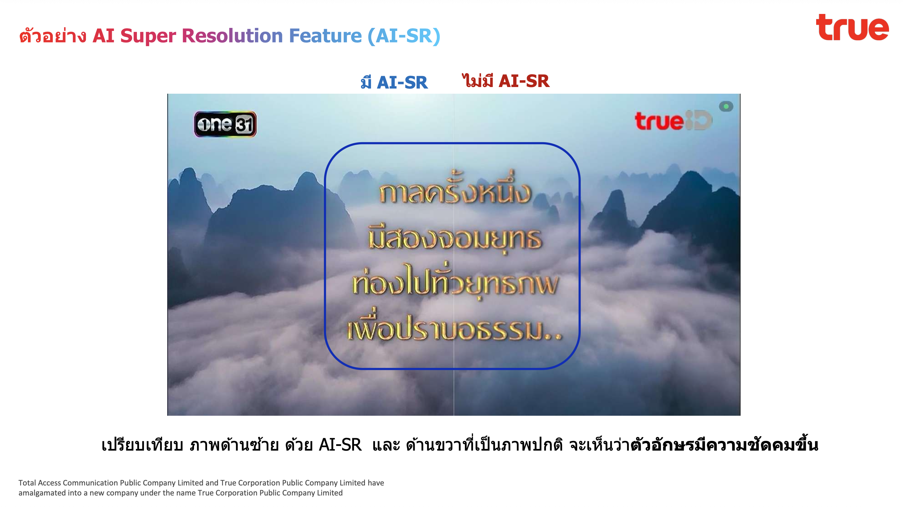 เป็นกล่อง Android TV ที่เปลี่ยนทีวีธรรมดาให้เป็นสมาร์ททีวี ช่วยให้คุณเข้าถึงความบันเทิงหลากหลายรูปแบบ เช่น การรับชมช่องทีวีดิจิทัล, ดูหนัง, ซีรีส์, การเช่าหนัง, การดูหนังบุฟเฟ่ต์, มิวสิควิดีโอ, และเกมส์. พร้อมทั้งยังสามารถรับชม แอปต่างๆ ผ่านกล่องทีวีได้เลย เช่น Netflix, YouTube Premium, TrueID , VIU , iQIYI และ Monomax