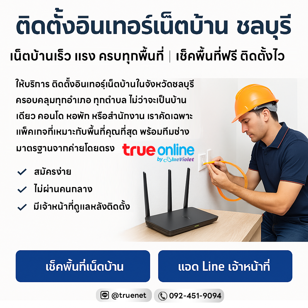 บริการติดตั้งอินเทอร์เน็ตบ้าน True Fiber ในจังหวัดชลบุรี
